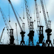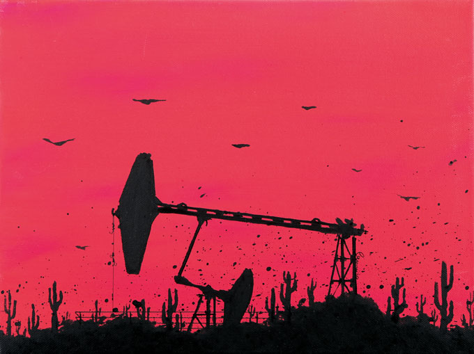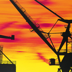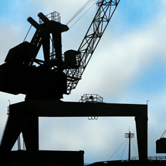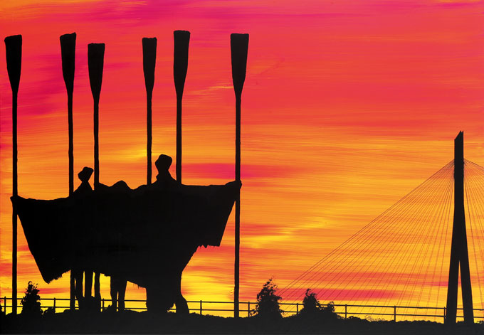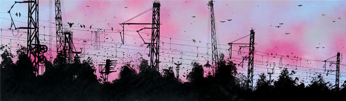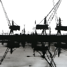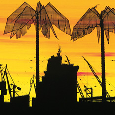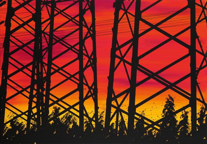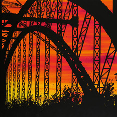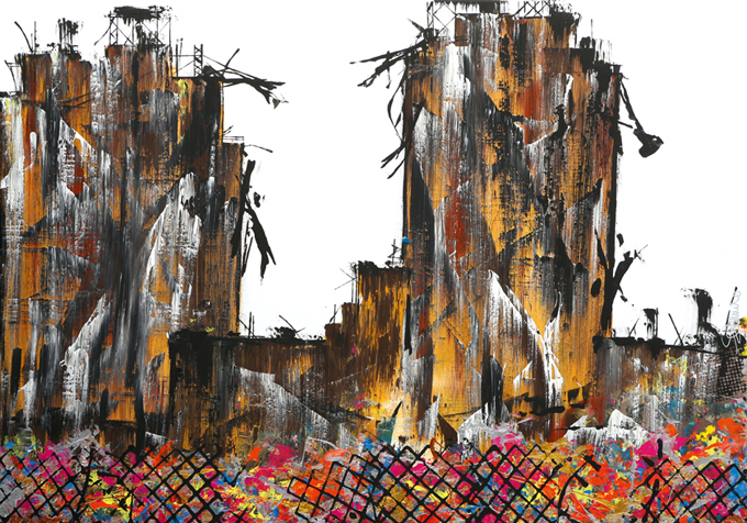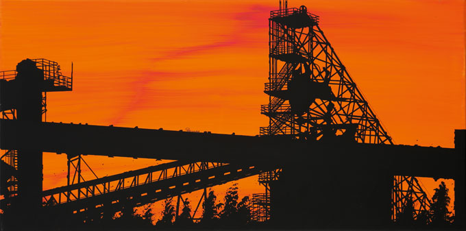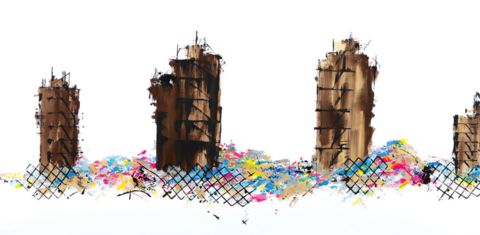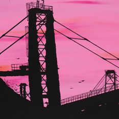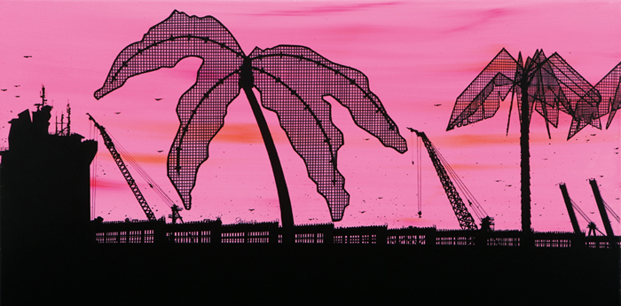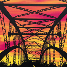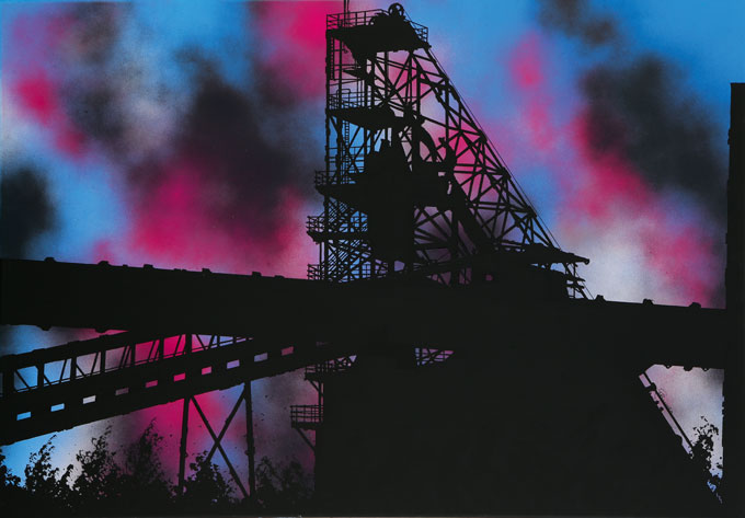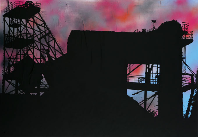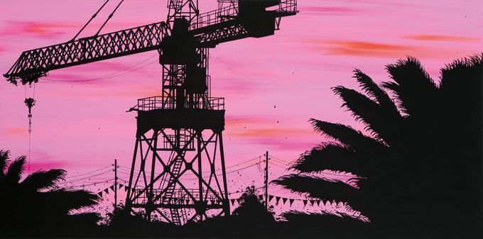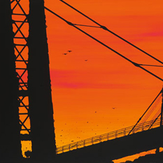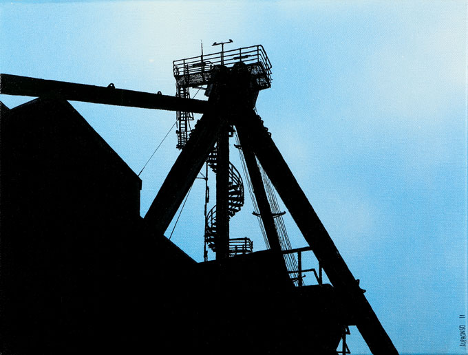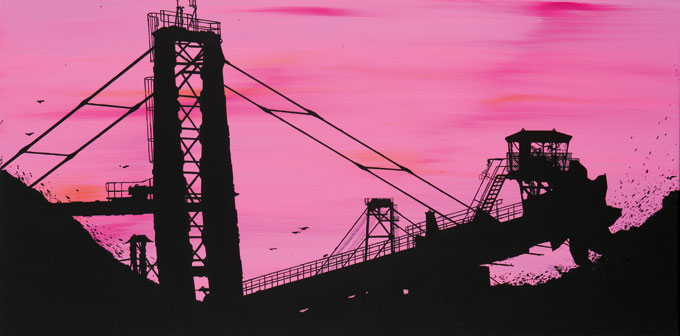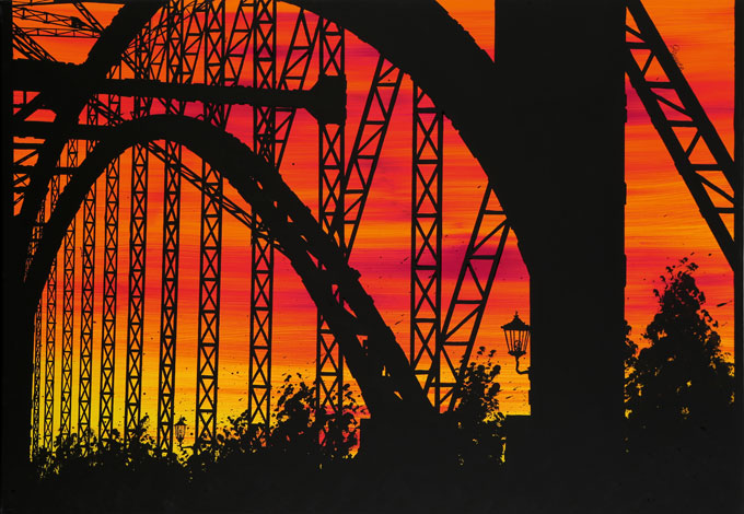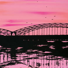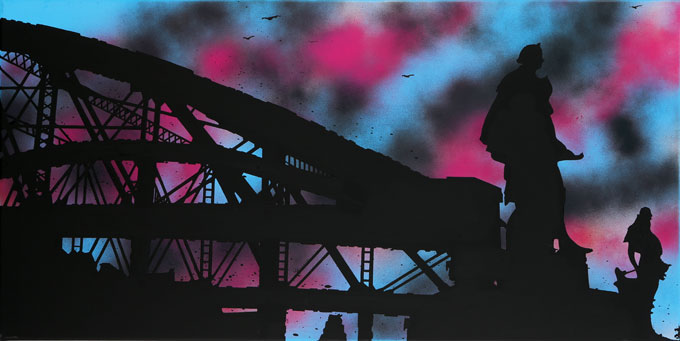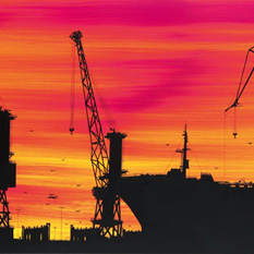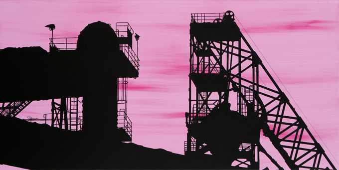 Die Leidenschaft zu Industrielandschaften ist in den Werken des jungen Hamburger Künstlers Janus Alphonso nicht zu übersehen.  Der Fokus auf Kräne und Brücken spielt hierbei eine große Rolle und wird in besonderer Art und Weise malerisch dargestellt.