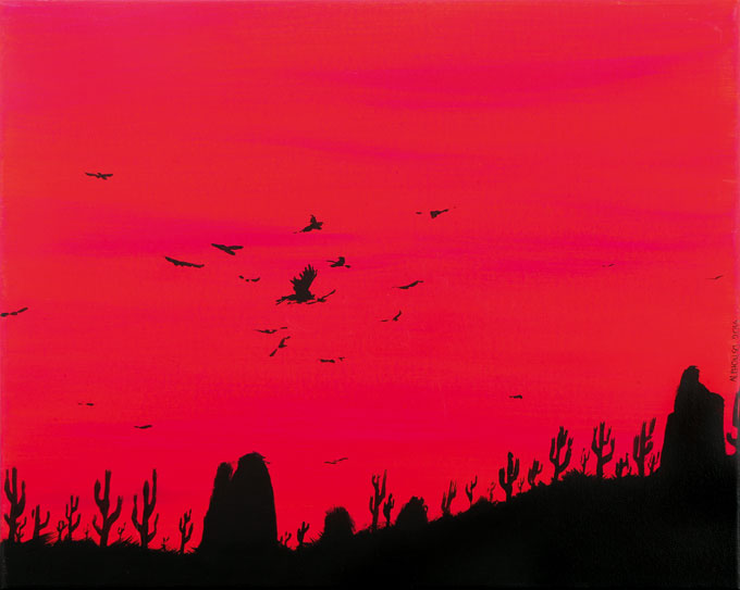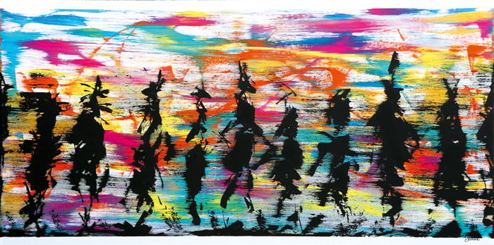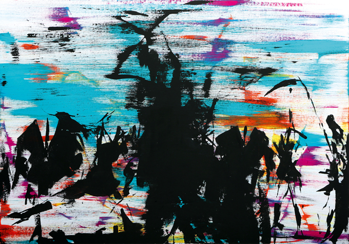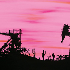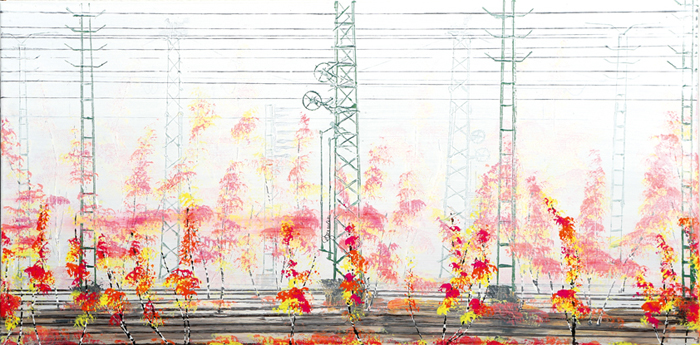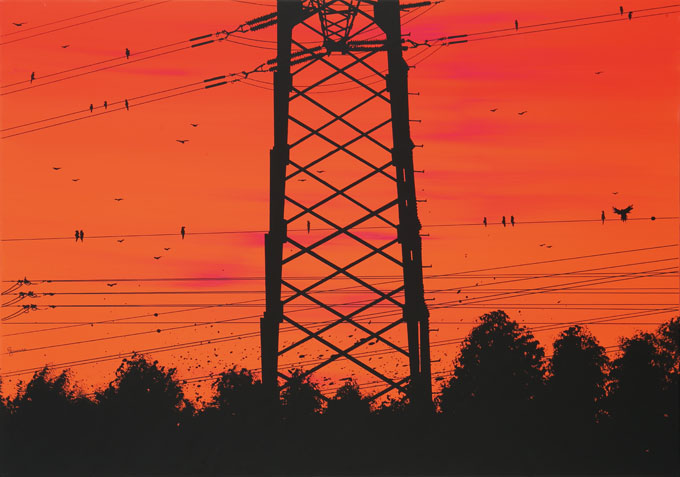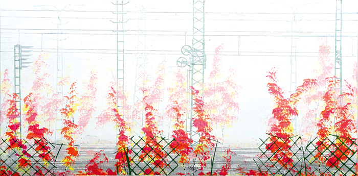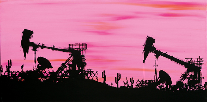 Janus Alphonso zeigt Industriedarstellungen im Einklang mit der Natur. Seine Kräne greifen nicht in die Natur ein und zerstören nicht die landschaftliche Schönheit. Im Gegenteil, der Künstler richtet sich nicht allein an eine idealisierte Welt, sondern an konkrete, durch die Industrie hervorgerufene Veränderungen des Verhältnisses Mensch und Natur im 21. Jahrhundert.